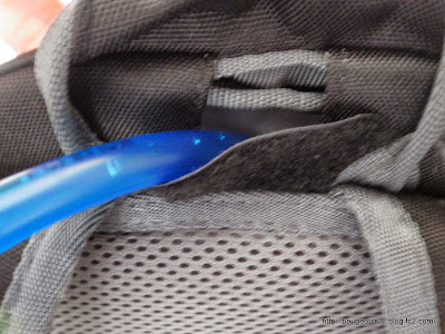 肩ベルトにも一箇所、ホースを止めるベルクロがついてます。